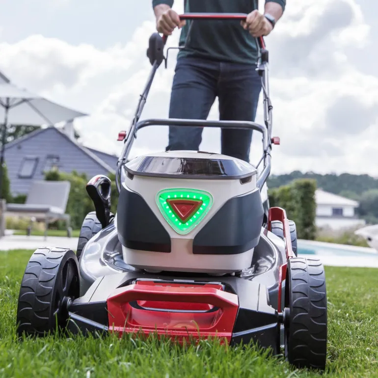 Takaveto, leikkuukorkeuden keskitetty korkeudensäätö 7-portaisesti ja miellyttävä kädensija helpottavat työskentelyä. 46.2 Li SP:ssä on tukeva jauhemaalatusta metallista valmistettu moottorikotelo, joka on kehitetty hyödyntämään AL-KO:n Max Airflow ‑teknologiaa. Tämä tarkoittaa, että kotelo on erityisen korkea ja suunniteltu niin, että ruoho leikkautuu mahdollisimman pienijakoiseksi ja keruusäiliö täyttyy mahdollisimman tehokkaasti. Kotelon muotoilu on erityisen edullinen bioleikkuussa, koska siihen mahtuu paljon ruohoa, mikä tarkoittaa, että moottori ei hidastu korkeassa ja kosteassa ruohikossa.