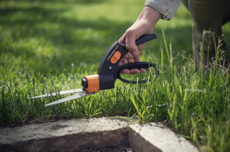 Fiskarsin ruohosaksissa on nerokas servomekanismi, joka estää teriä tarttumasta toisiinsa ja takaa jatkuvan toiminnan. Kevyet, ergonomiset ruohosakset ovat helppokäyttöiset ja miellyttävät, ja niiden leikkuukulma on säädettävissä 360 asteeseen asti.