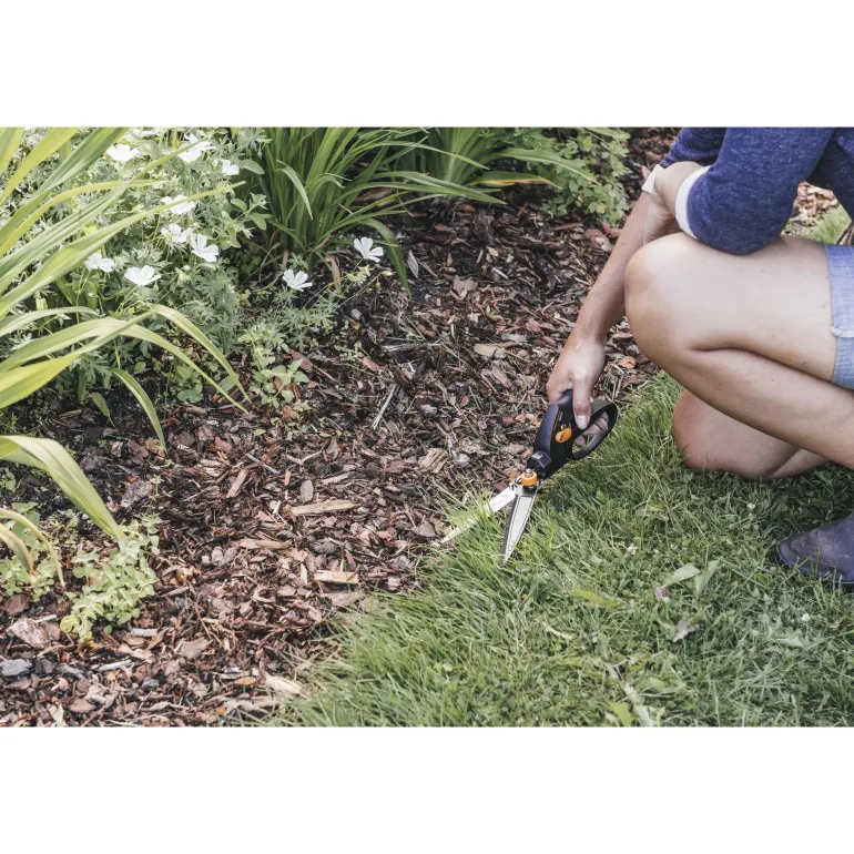 Trimmaa nurmikon reunat ja pensasaidat. Säädettävä leikkuukulma 180°. Ergonomisesti muotoiltu kumikahva sormisuojalla.