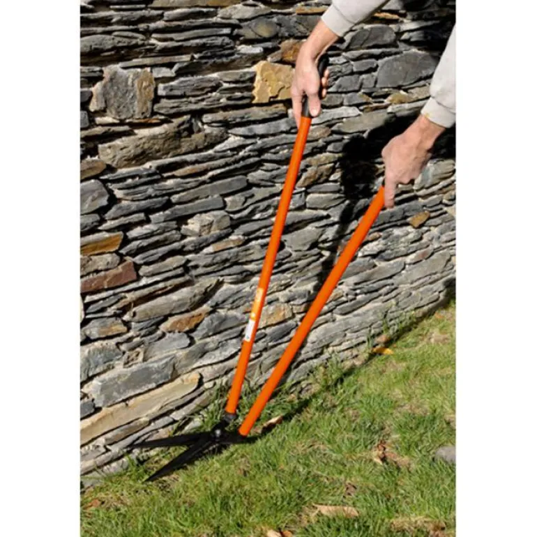 Pitkät ruohosakset reunusten, puiden ympärysten ym. leikkaamiseen. 90 cm pitkät varret teräsputkea, vaakasuuntaiset Xylan®-pinnoitetut terät, joiden pituus 20 cm.