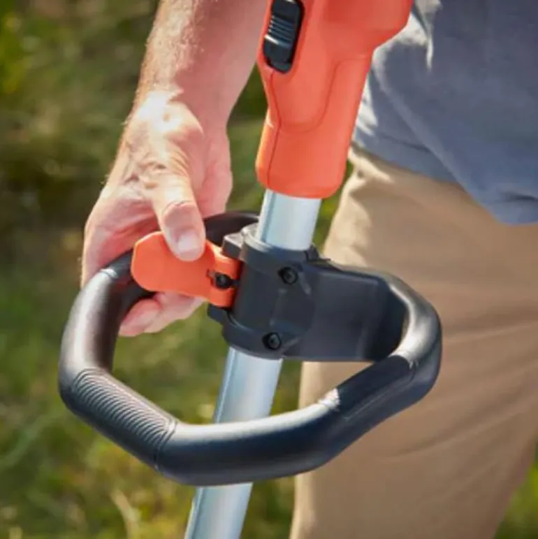 36 V ruohotrimmeri, jonka leikkuuleveys on 33 cm ja leikkuunopeus 7300 kierr./min. Trimmerin avulla suoria reunoja on helppo leikata Trim & Edge™:lla, joka kääntää päätä ja leikkaa reunoja pitkin.