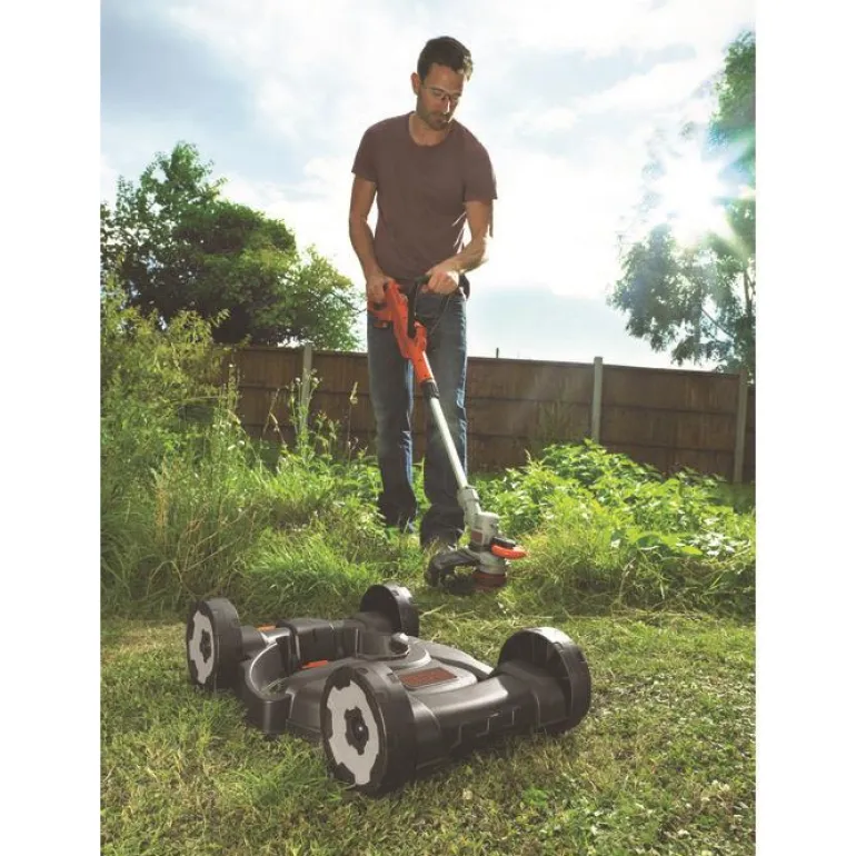 Black & Decker STC1820CM-QW on näppärä 18 V ruohotrimmeri, jonka leikkuuleveys on 28 cm ja leikkuunopeus 5500-7400 kierr./min. Korkean vääntömomentin vaihteistojärjestelmän avulla voit leikata tiheäkasvustoisia alueita sekä pitkää ruohoa. Varustettu reunaohjattavilla pyörillä, joiden ansiosta on helpompi kuin koskaan vaihtaa reunojen trimmaukseen ja saada täydelliset reunat joka kerta. Voit helposti napsauttaa trimmerin pyörille käyttääksesi sitä ruohonleikkurina.