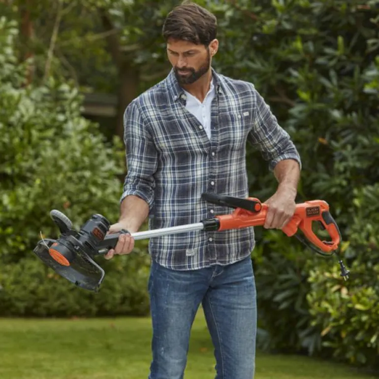 Black & Decker BESTE630-QS on 550 W ruohotrimmeri, jonka leikkuuleveys on 30 cm. Trimmerin leikkuunopeus on 7500 kierr./min ja se on varustettu POWERCOMMANDILLA, joka tarjoaa helpon langansyötön napin painalluksella. Kääntyvä trimmauspää auttaa tasoittamaan reunoja.