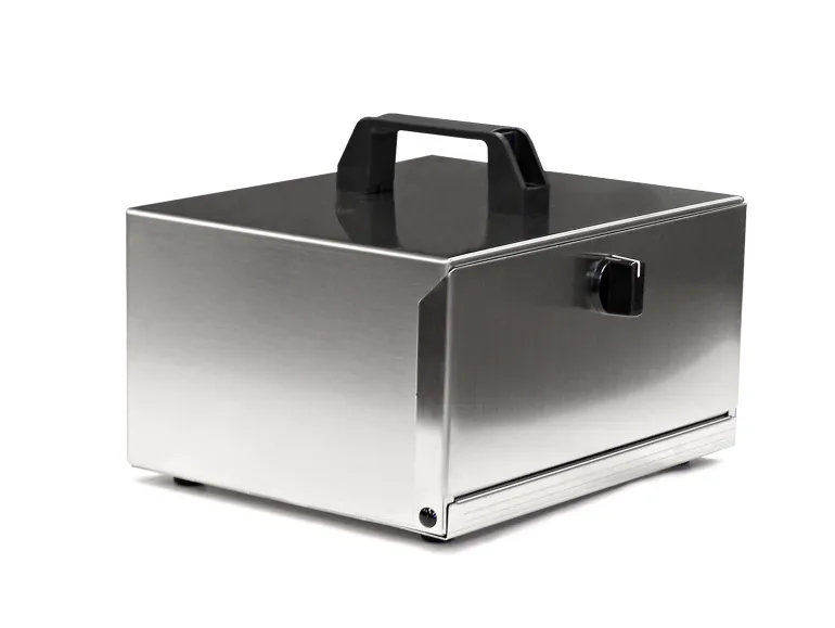 Ruokalaatikon lämmitin, jossa yksi uuni, 50 W, tukeva rakenne, valmistettu kokonaan ruostumattomasta teräslevystä, uunin pohja alumiinia.