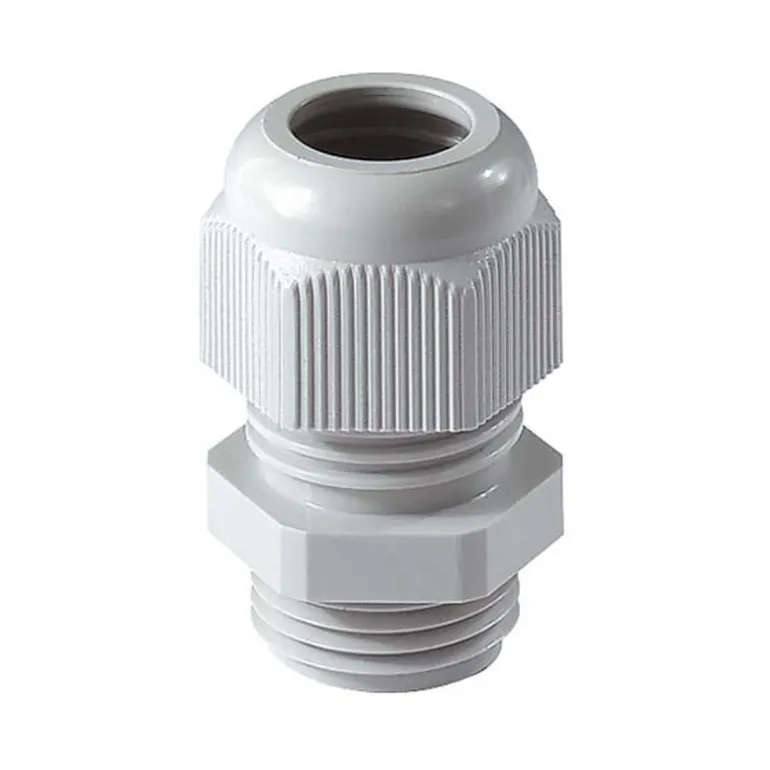 Harmaasta polyamidista valmistettu kaapelitiiviste, RAL 7035. Sisältää neopreenitiivisteen.