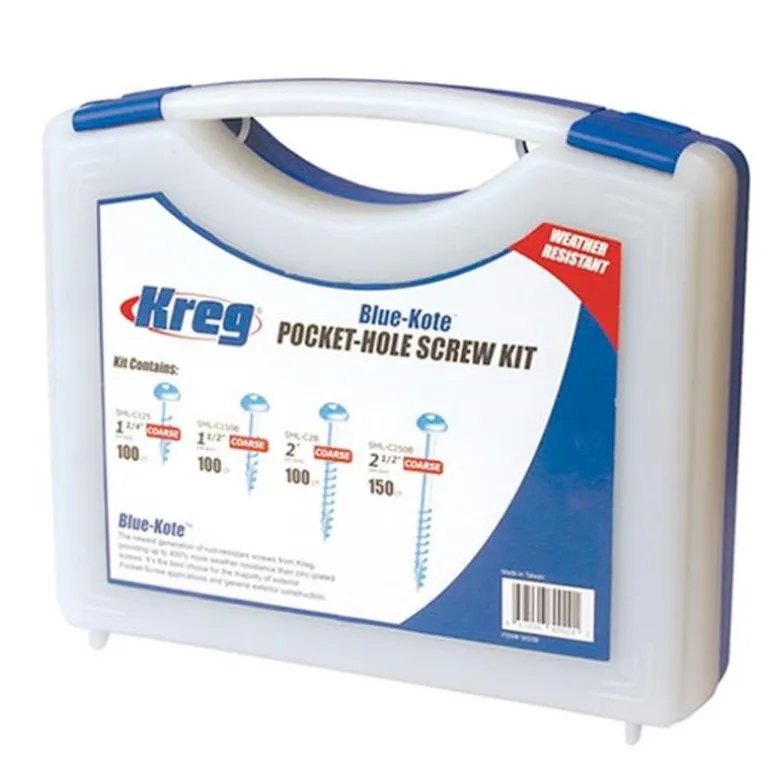 Kreg SK03B on 450 kpl Blue-Kote-ruuveja 31-63 mm, ulkokäyttöön.