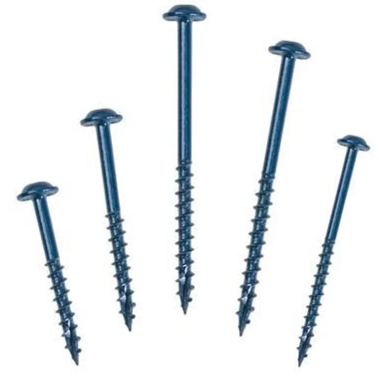 50 kappaleen pakkaus 51 mm:n Blue-Kote-ruuveja, joissa on kolminkertainen korroosiosuojaus. Ruuvi soveltuu moniin sisä- ja ulkoprojekteihin, ja siinä on Maxi-Loc-pää ja karkea profiili, joka porautuu erityisen hyvin pehmeään puuhun, kuten vaneriin.