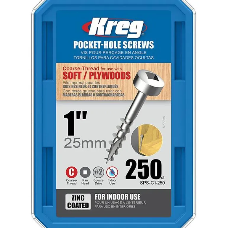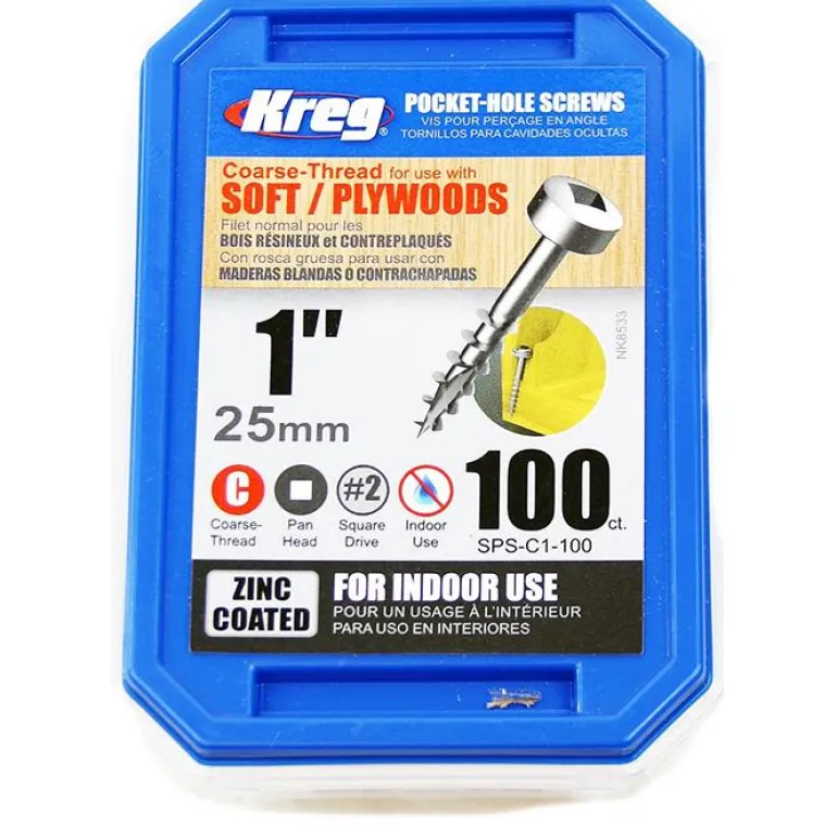 Kreg SPS-C1-100 on 100 kpl harvakierteisiä sinkittyjä 25 mm:n ruuveja. Ruuvi sopii 16 mm:n levyjen kiinnittämiseen toisiinsa.