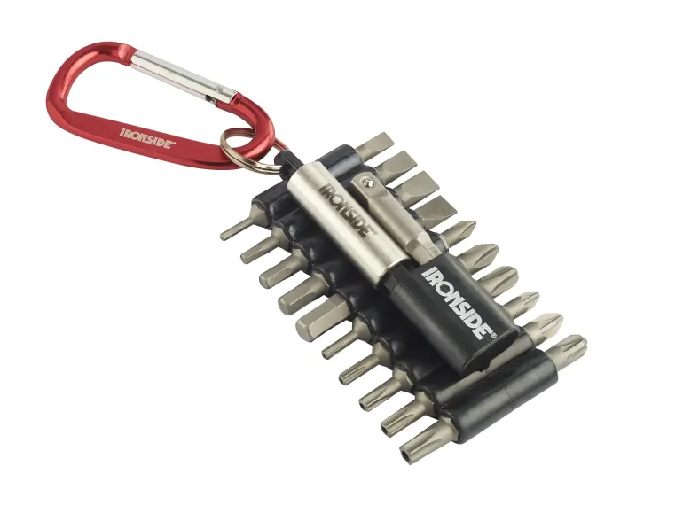 Sisältää 22 osaa: magneettinen kärjenpidin, hylsysovitin ¼” x 50 mm sekä 20 kpl 25 mm pitkiä kärkiä ¼” liitännällä: talttameisseli 4, 5, 6, 7 mm, Phillips nro 1, 2, 3, Pozi-meisseli 1, 2, 3, reiällinen Torx nro 10, 15, 20, 25, 30, kuusio 2, 3, 4, 5, 6. Punainen karbiinihaka ja musta kärkimatto.