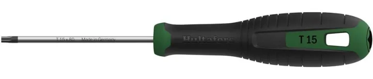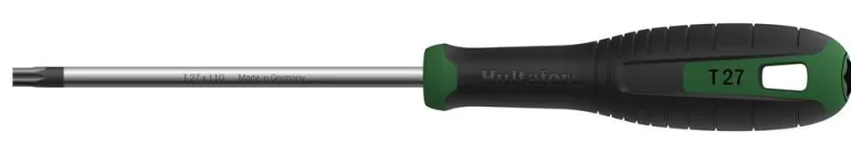 Torx-kärkimeisseli on yhdessä ammattilaisten kanssa kehitetty ammattikäyttöön. Ergonominen muotoilu optimaalisen mukavuuden takaamiseksi. Pitkä kumipäällysteinen kahva mahdollistaa tarkan työskentelyn ja voimankäytön. Kahva on valmistettu kestävästä PPC-muovista ja se on päällystetty kestävällä ja hyvän pidon antavalla kumilla. Kahvan päässä on merkittynä meisselin tyyppi ja koko – se helpottaa oikean meisselin valintaa. Varsi on valmistettu korkealaatuisesta karkaistusta teräksestä. Ruuvimeisselin kahvassa on reikä ripustamista tai turvanarun kiinnittämistä varten. Kahvan muotoilu estää ruuvitalttaa vierimästä kaltevilla pinnoilla.