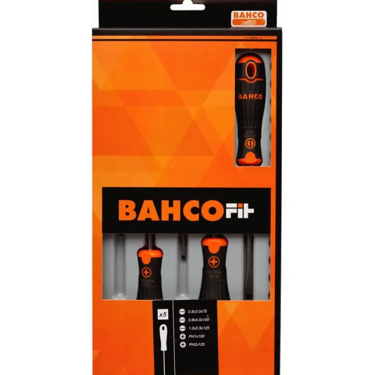 5-osainen ruuvimeisselisarja, johon sisältyy 2 kpl PH ristipäisiä ruuvimeisseleitä ja 3 kpl uraruuvimeisseleitä.