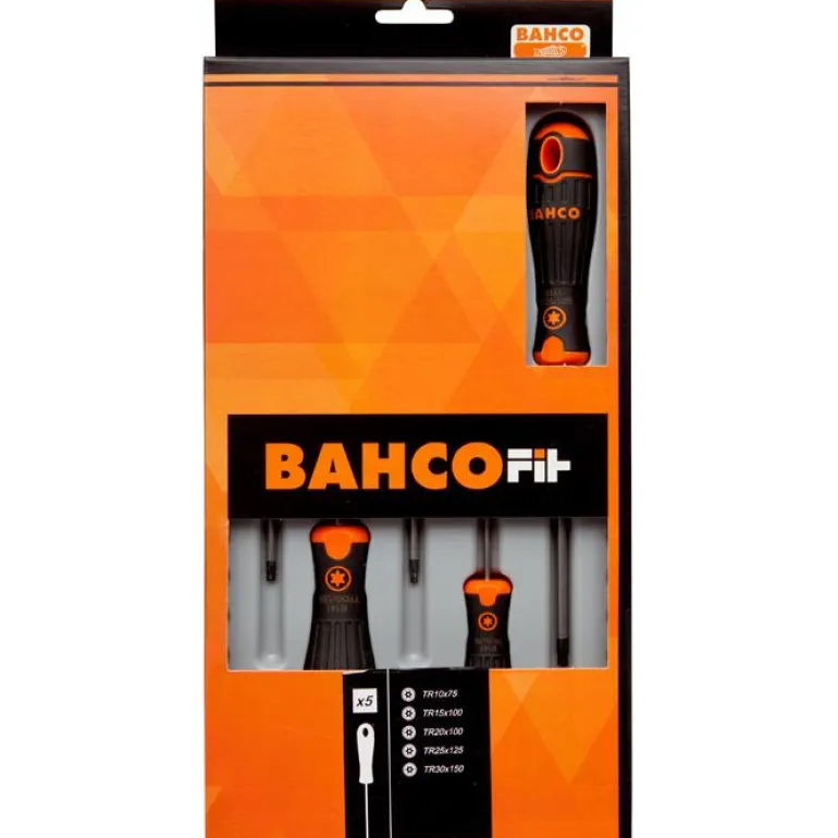 5-osainen ruuvimeisselisarja, sisältää 5 kpl Torx-ruuvitalttoja, joissa on keskireikä.