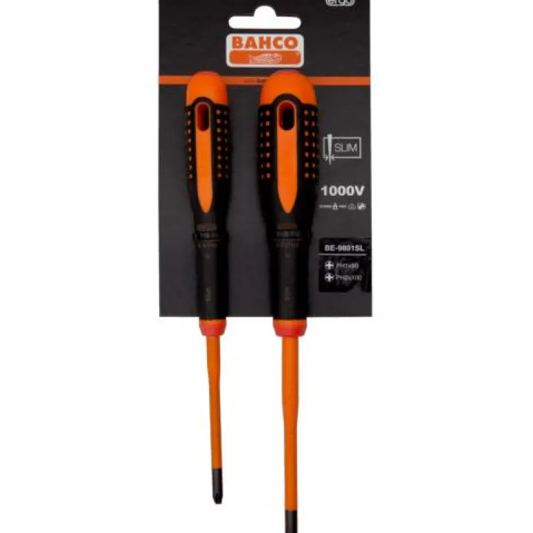 Bahco BE-9891SL on 2-osainen ERGO™ ruuvitalttasarja, jossa eristetyt taltat Phillips-ruuveille. Soveltuu sähkökaappikäyttöön yms.