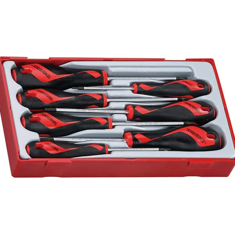 Teng Tools TT917TXN on 7-osainen ruuvitalttasarja, jossa 2 kpl TX-talttoja ja 5 kpl TPX-talttoja.