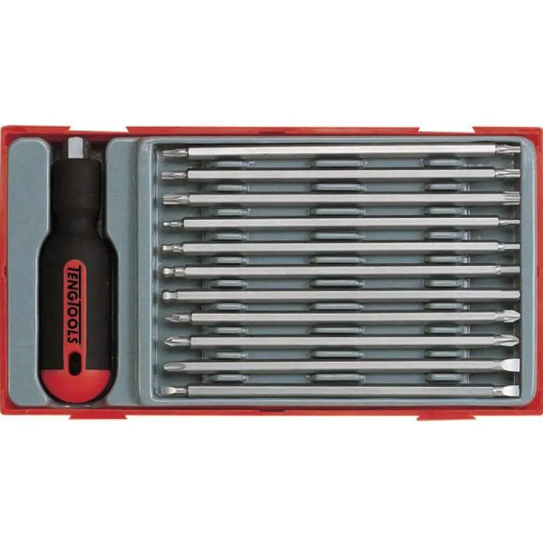 Teng Tools TTMD12D on 12-osainen ruuvitalttasarja. Sisältää ruuvitalttakahvan ja 11 käännettävää ruuvitalttapäätä, joissa on talttapää kummassakin päässä.