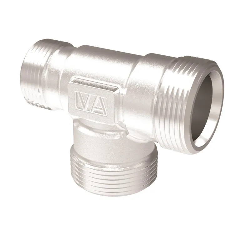 Kromattu T-putken muotoinen ruuviosa, mitat 12x15x15 mm. Voidaan yhdistää Vatetten järjestelmän muihin ruuviosiin, kaksoismuttereihin ja palloventtiilien osiin räätälöidyn seinäjakelijan luomiseksi.