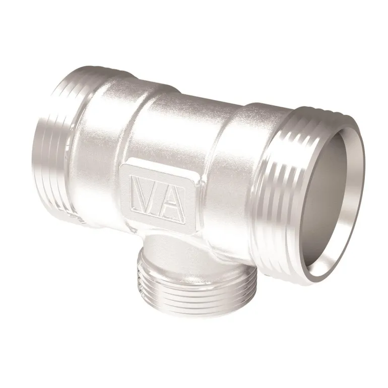 Kromattu T-putken muotoinen ruuviosa, mitat 12x15x15 mm. Voidaan yhdistää Vatetten järjestelmän muihin ruuviosiin, kaksoismuttereihin ja palloventtiilien osiin räätälöidyn seinäjakelijan luomiseksi. Vatette V6 -järjestelmän osa, jolla saa automaattisesti 60 k/k.
