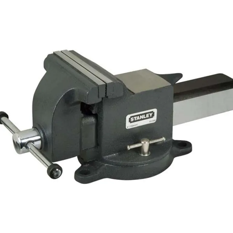 Ruuvipenkki, jossa on korroosiota kestävät nikkelipinnoitetut leuat ja valssatut kierteet sujuvan toiminnan ja kestävyyden takaamiseksi. Pohjaa voidaan kiertää ja voidaan lukita haluttuun asentoon.