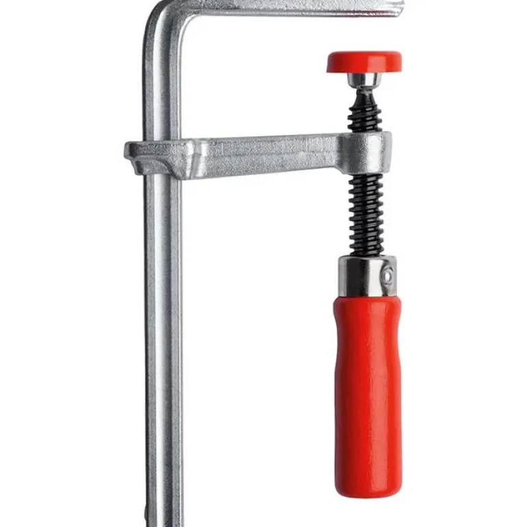 Ruuvipuristin ohjainkiskolle, aukkoväli 120 mm, syvyys 60 mm ja puristusvoima 180 kg. Ergonomisesti muotoiltu puukahva. Sopii sahakiskoille ja työpöydille, joiden vastaava profiili on 12 x 8 mm.