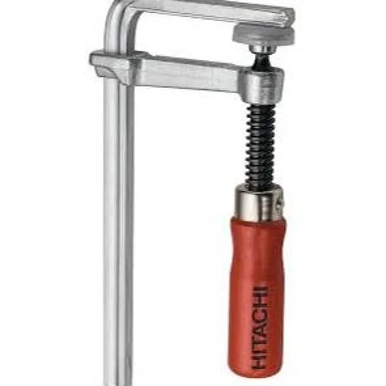 Ruuvipuristin, joka kiinnittää ohjainkiskon työkappaleeseen. Kätevä tapa pitää ohjainkisko paikoillaan.