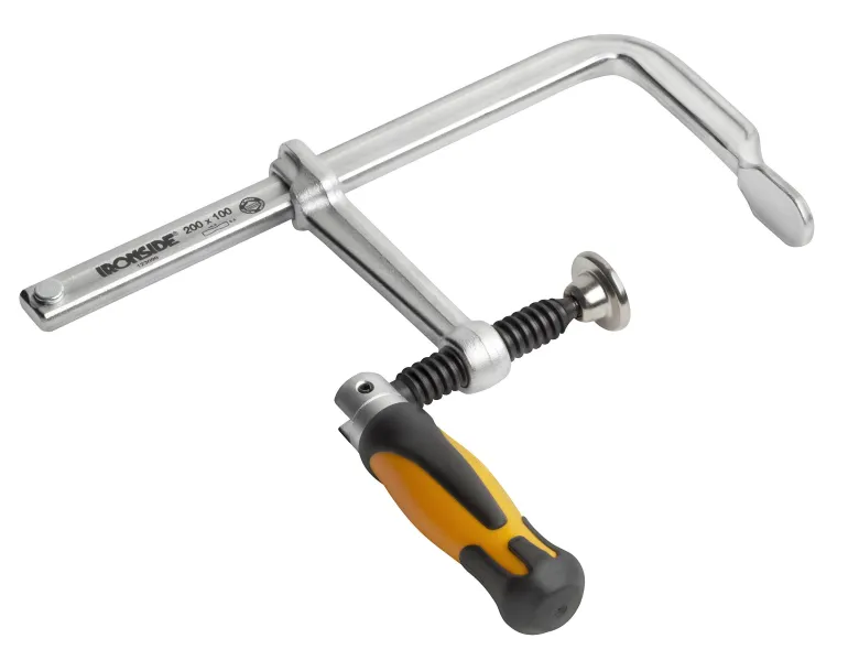 Täystaottu teräksestä, kirkassinkitty ja profiloitu kisko. Pallonivelletty painolevy ja ergonomisesti käännettävä kaksikomponenttikahva mahdollistavat suuremman jännitysvoiman ja nopeamman puristuksen. Mitat: jänneväli x kidan syvyys.
