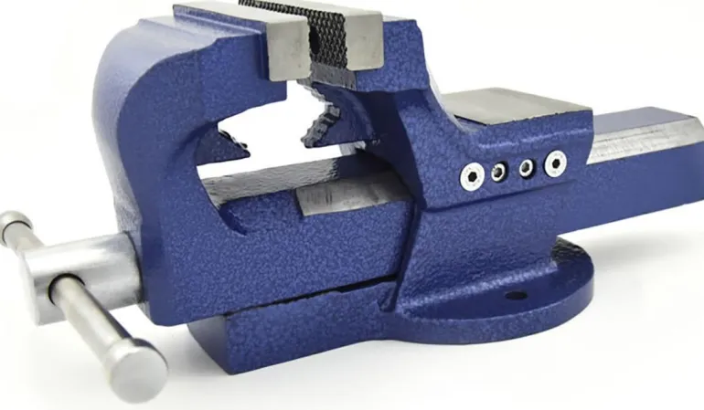 Ironside-penkkiruuvipuristin teollisuuteen ja käsitöihin. Kiinteät putkileuat sileiden leukojen alla.