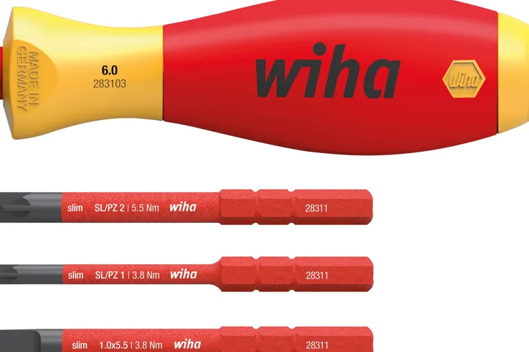 Wiha slimVario® electric ruuvimeisseli vaihdettavilla kärjillä, joka mahdollistaa turvallisen työskentelyn jännitteisten osien parissa 1 000 V AC saakka. Käyttämällä ruuvimeisselin kädensijaa SoftFinish ja sen vaihdettavia slimBit-kärkiä suoriudut monista erilaisista töistä ilman että sinun on kuljetettava mukana erillistä ruuvimeisseliä jokaista profiilia varten.