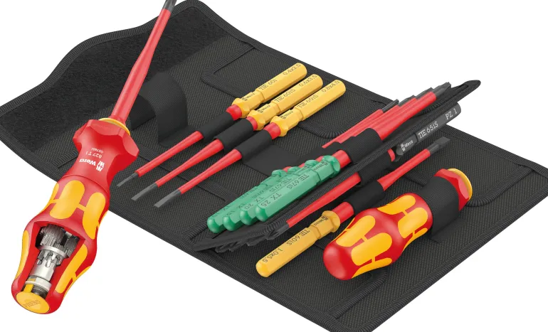 VDE-vaihtoterät (pituus 157 mm), joissa on kätevä pyöritystoiminto, kierimisenesto ja Take it easy -värikoodausjärjestelmä: värikoodit profiilien mukaan ja laseroitu kokomerkintä