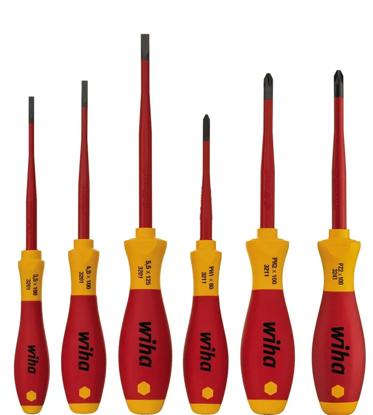 Ruuvimeisselisarja SoftFinish electric slimFix, joka sisältää 3 uraruuvimeisseliä, 2 Phillips/PH -ruuvimeisseliä ja PlusMinus/Pozidriv -ruuvimeisselin. SoftFinish®-ruuvimeisselin kahva on ergonomisesti muotoiltu ja takaa käsivoimien optimaalisen siirtymisen. Pitkän ja kapean kahvan muotoilun ansiosta pienet ruuvit voidaan vääntää paikoilleen nopeasti ja turvallisesti. Integroidun suojaeristyksen ansiosta pääset käsiksi syvällä oleviin ruuvi- ja jousielementteihin.