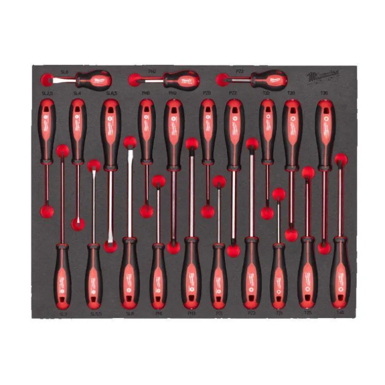 23-osainen ruuvitalttasarja, mukava Tri-Lobe-kahva, joka on optimoitu maksimaaliseen käyttömukavuuteen ja suuriin vääntömomentteihin. Taltoissa on karkaistut magneettikärjet, jotka takaavat maksimaalisen kiinnityksen ja kestävyyden.