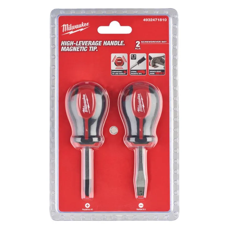 Milwaukee Tri-Lobe STUBBY on ruuvitalttasarja, jossa on 2 mukavalla Tri-Lobe-kahvalla varustettua ruuvimeisseliä. Ruuvitaltoissa on pysyvät selkeät tunnistemerkinnät työkalun nopeaa tunnistamista varten sekä karkaistut magneettiset kärjet maksimaalista kiinnitystä ja kestävyyttä varten.