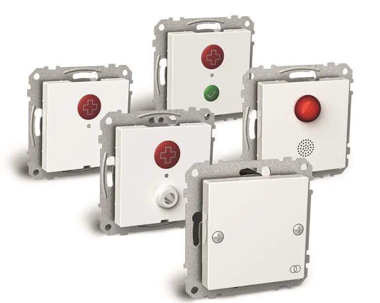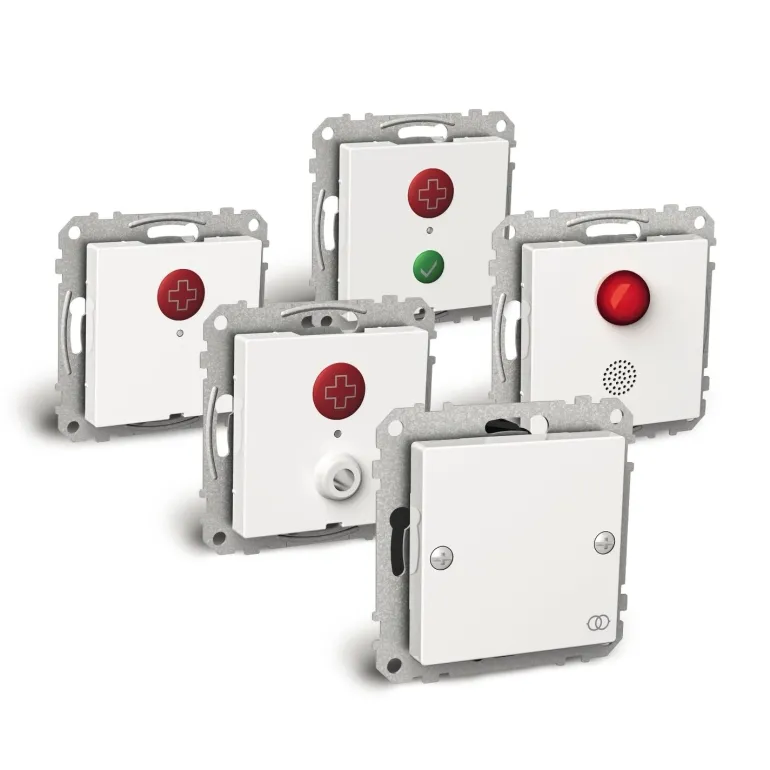 RWC-paketti, jossa on 1 muuntaja, 1 kutsupainike, 1 kutsupainike signaaliliitännällä, 1 muistiyksikkö palautus-/hätäpainikkeella ja 1 huonemerkkivalo äänimerkillä. Asennus kojerasiaan c/c 60mm tai up-asennus rasiaan , 21mm (painikkeet), 35mm (Trafo).