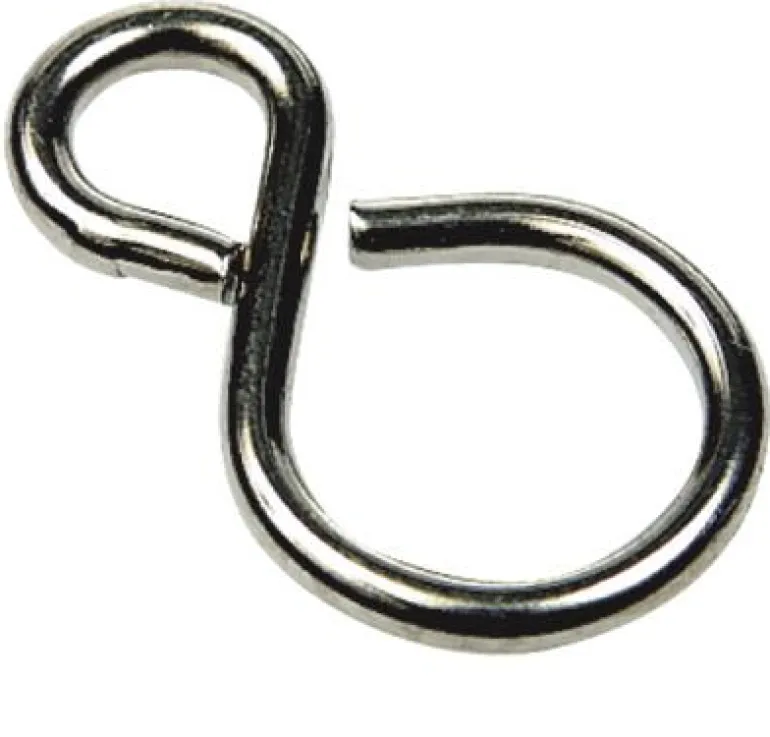 Suljettu teräksinen S-koukku. Nikkelipinnoitettu.