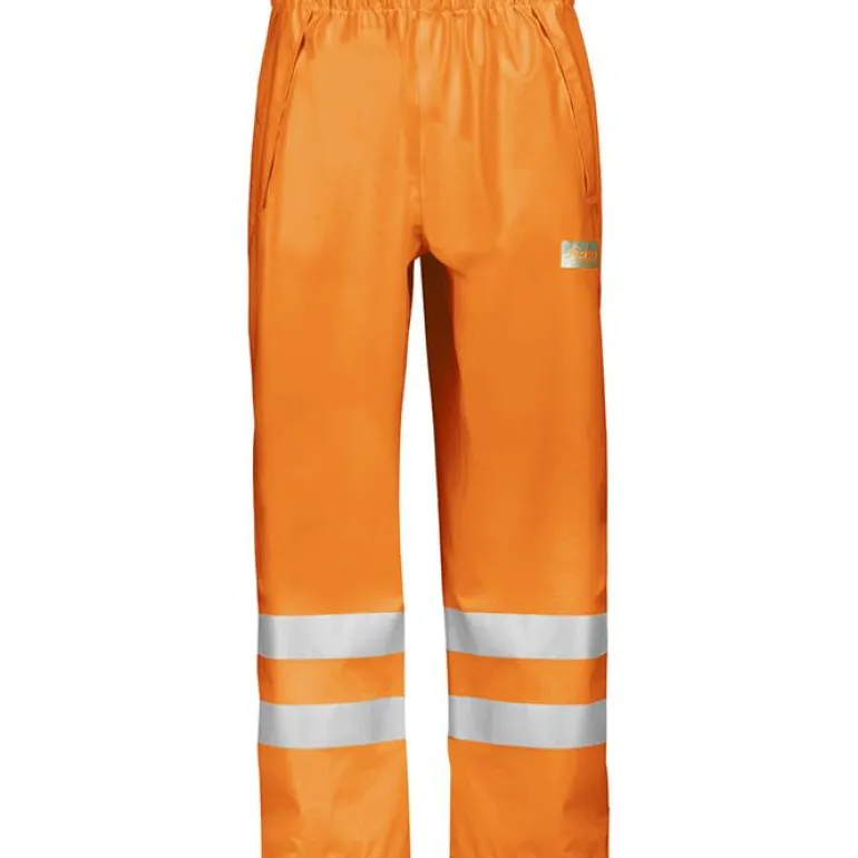 Täysin vedenpitävät huomiosadehousut hyvällä näkyvyydellä. Valmistettu joustavasta PU-pinnoitetusta kankaasta, jossa on hitsatut saumat.