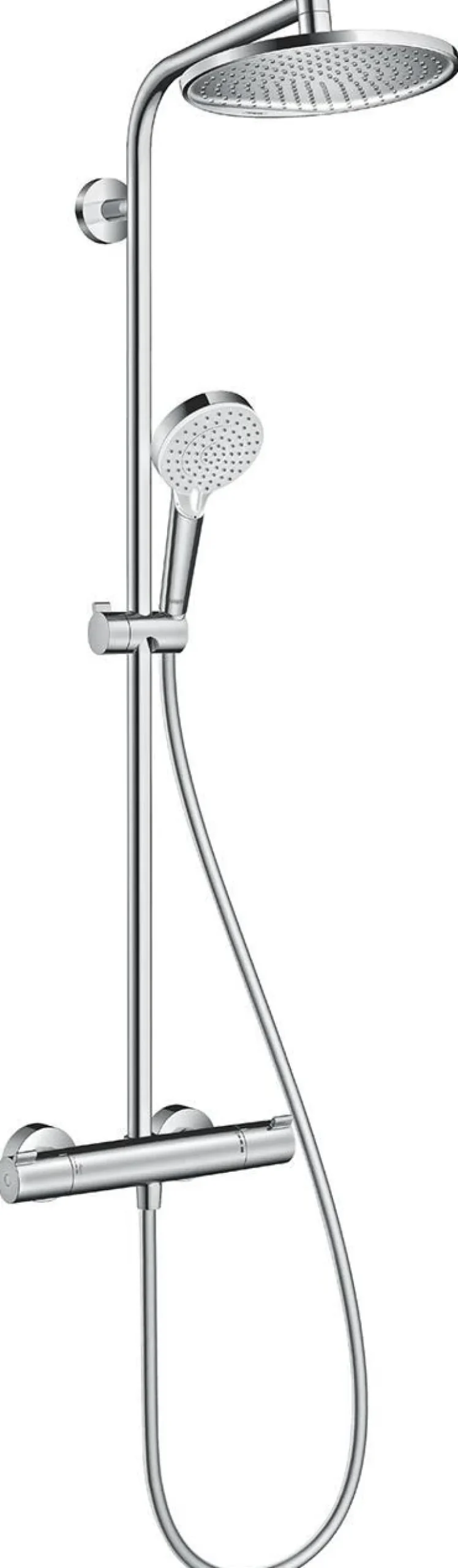 Hansgrohe Crometta S 240 sadesuihkusetti 160 cc, jossa yläsuihku, käsisuihku, suihkuhana, suihkutanko, suihkuletku ja liukusäädin.