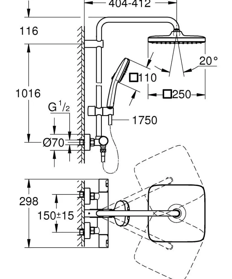 Grohe Water Saving -virtaamanrajoitin vähentää vedenkulutusta vaikuttamatta suorituskykyyn. Grohe DreamSpray -teknologia varmistaa tasaisen vedenjaon jokaisesta suuttimesta optimaalisen suihkukokemuksen takaamiseksi. SpeedClean-silikonisuuttimet on helppo puhdistaa pyyhkäisemällä kalkki pois sormella. GROHE SafeStop lämpötilan rajoitus (38 °C) ja GROHE SafeStop Plus vaihtoehtoinen 43 °C lämpötilarajoitin. Grohe TurboStat -tekniikka pitää veden lämpötilan tasaisena ilman epämiellyttäviä yllätyksiä. AquaDimmer-toiminnolla voit helposti vaihtaa ylä- ja käsisuihkun välillä ja säätää veden virtausta yhdellä käden heilautuksella. Kestävä ja helppohoitoinen Grohe Long-Life -pinta pitää pinnan laadukkaana ja säilyttää ulkonäön vuosien ajan.