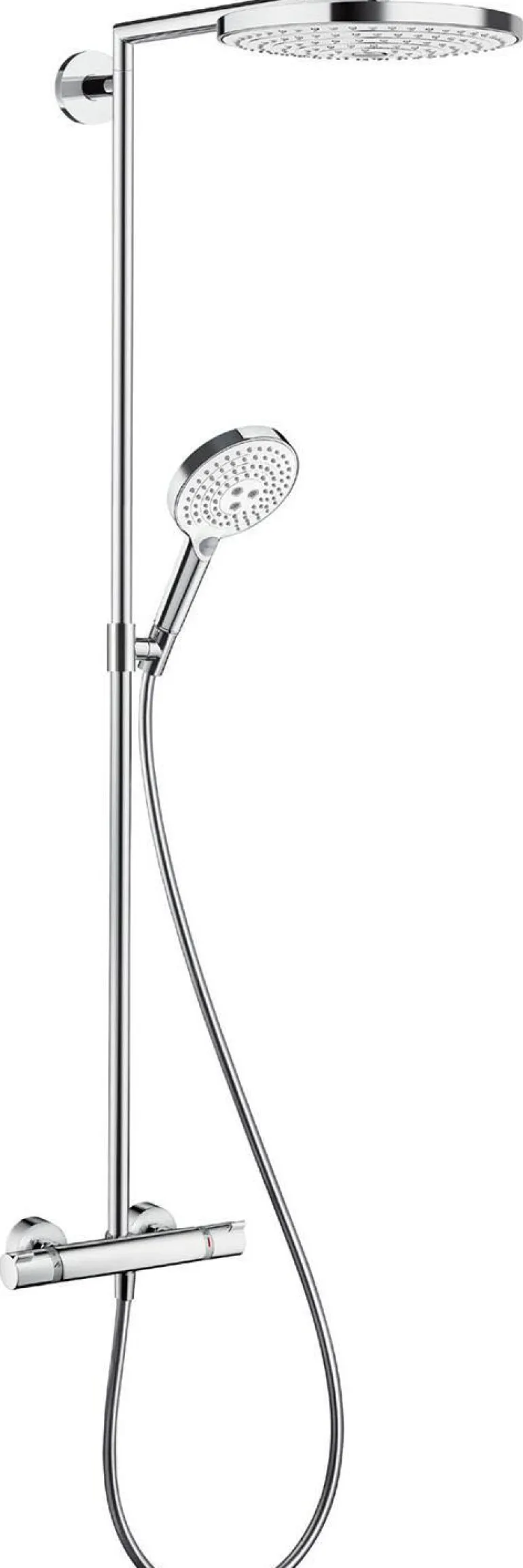 Sadesuihkusetti, jossa yläsuihku, käsisuihku, suihkuhana, suihkutanko, suihkuletku ja liukusäädin.