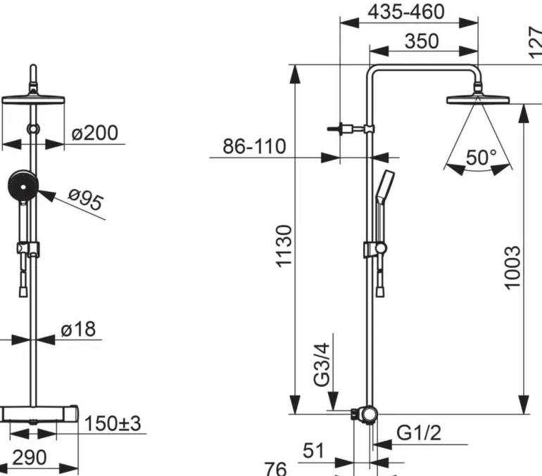 Suihkun osat: Käsisuihku, Suihkutanko, Sadesuihku/Yläsuihku, Säädettävä suihkun kannatin, Suihkuletku (1750 mm), Säädettävä asennus, Nivelletty suihkulautanen, Silikonisuuttimet (helppo puhdistaa)