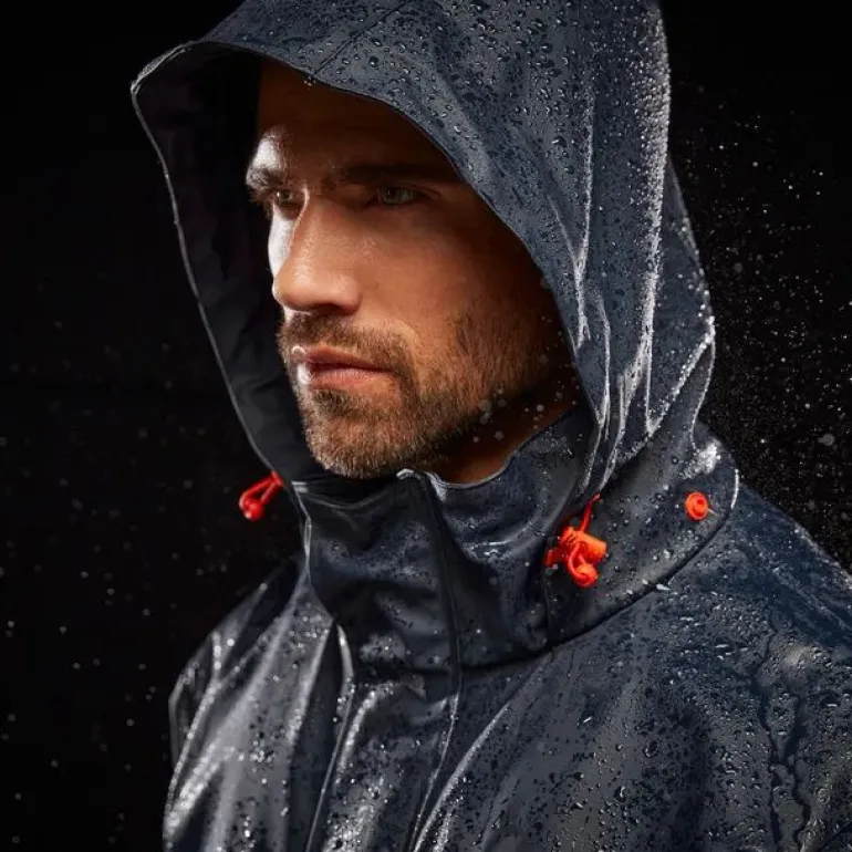 Laivastonsininen tuulitakki, joka asettaa uuden standardin sadevaatteille, suunniteltu ulkokäyttöön kaikissa sääolosuhteissa. Valmistettu ftalaatittomista materiaaleista, jotka ovat ympäristöystävällisiä ja pitävät sinut kuivana ja mukavana kaikissa sääolosuhteissa.