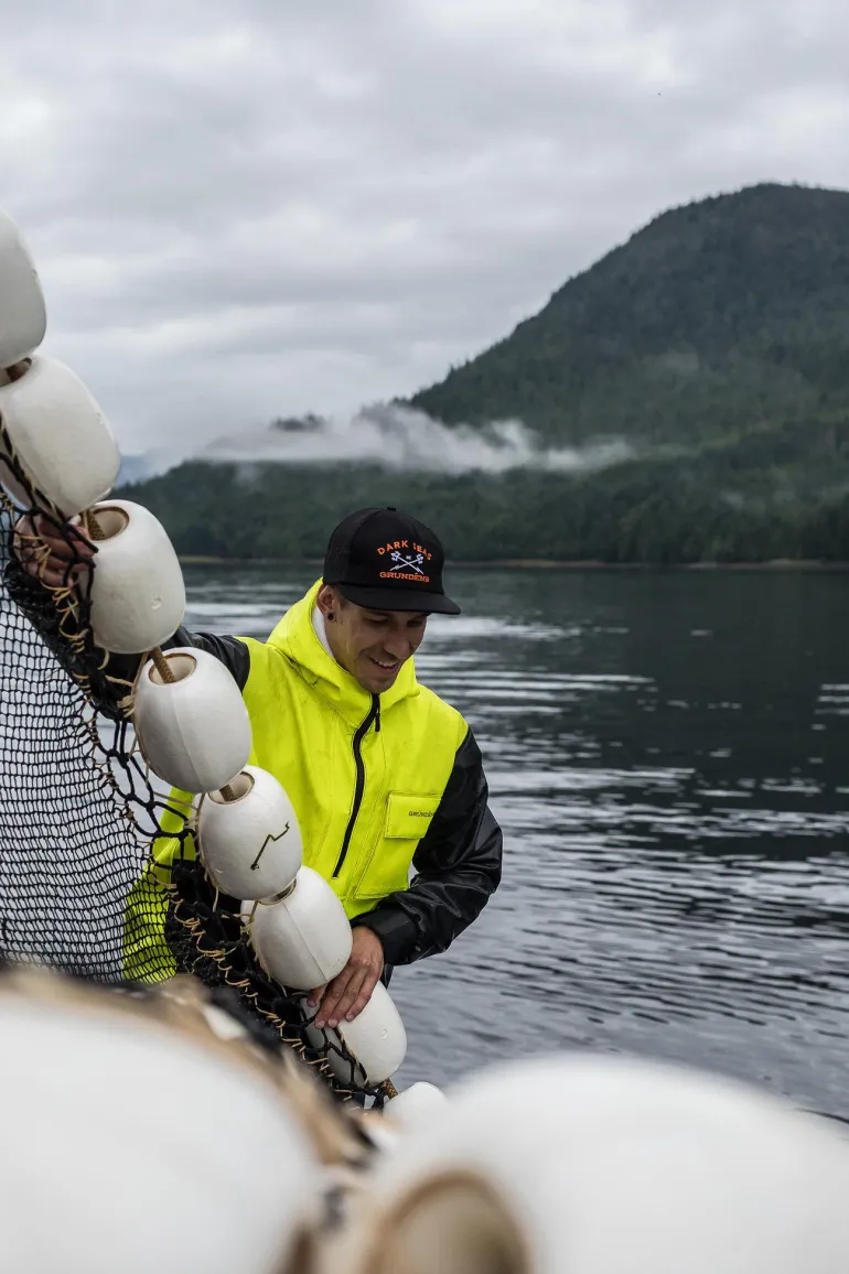 Anorakki, jossa säädettävä huppu ja säädettävä helma. Rintatasku.