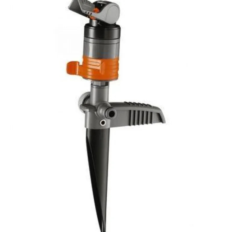 Sadetin, jossa on piikki ja likaa kestävä Turbo-Drive-mekanismi, joka kastelee nurmikkosi hiljaisesti. Varustettu Gardena-järjestelmän liittimillä ja päätykorkeilla sekä helppokäyttöisellä pyörivällä ohjauksella suuttimen toimintasäteen asettamiseksi.