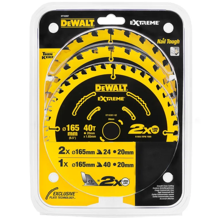 Tarkkuushiotuilla hampaankärjillä varustettu pitkäikäinen kovametallinen sahanterä. Sahanterässä on iskuja vaimentava sisus, ja se kestää jopa 3 uudelleenhiontaa.