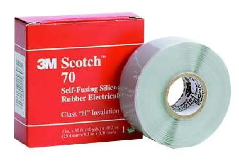 Scotch® sähköteippi 70 on 0,3 mm paksu, valokaari- ja pintavirtakestävyydeltään erinomainen teippi, joka on valmistettu itsesulautuvasta epäorgaanisesta silikonikumista. Tämä itsesulautuva teippi on erittäin mukautuva, ja sen sähkökestävyys on erinomainen.