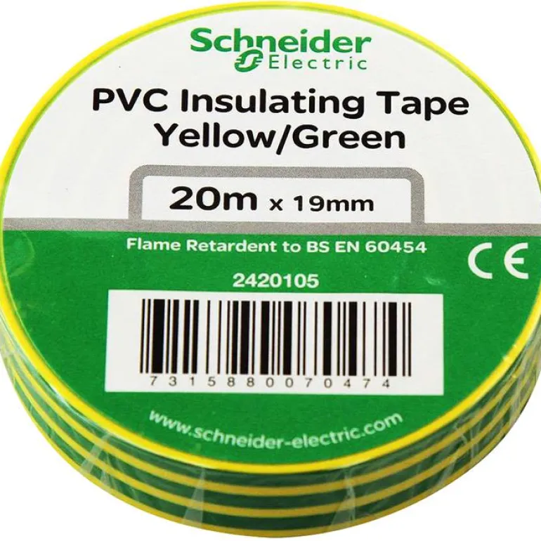 Schneider 2420104 on pehmeästä ja joustavasta PVC: stä valmistettu valkoinen sähköteippi. Teipillä on erittäin hyvä tarttuvuus, ja se soveltuu sähköasennuksiin ja esimerkiksi kaapeleiden ja putkien liitoksiin.