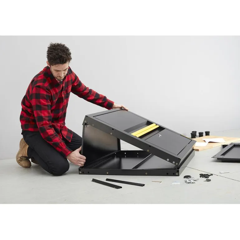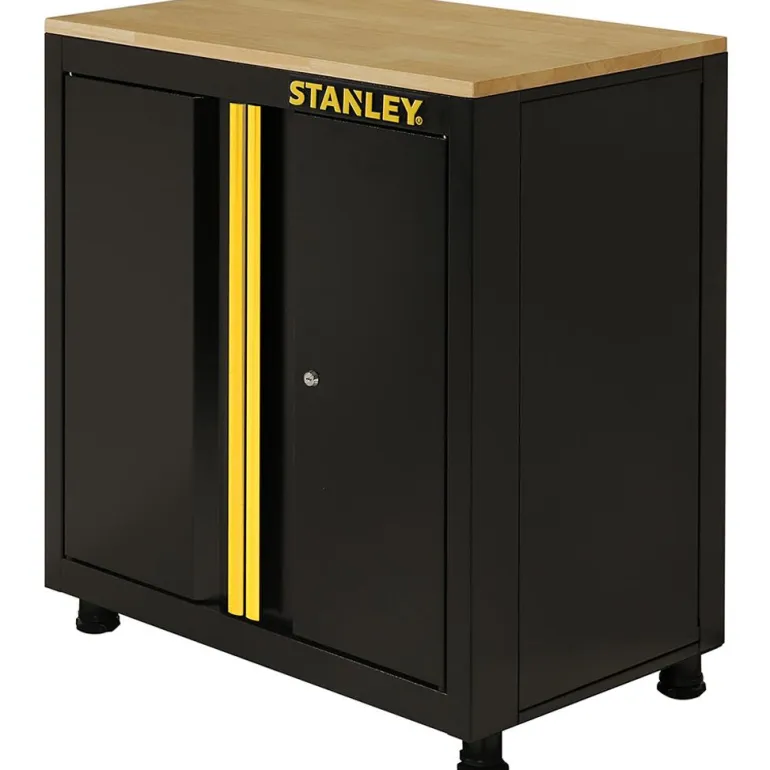 STANLEY® Ready- To- Assemble on helposti asennettava säilytysratkaisusarja autotalleihin ja työtiloihin. Ihanteellinen työkalujen ja työtarvikkeiden järjestämiseen ja säilytykseen turvallisesti ja organisoidusti. Moduulisäilytysratkaisu on suunniteltu varmistamaan, että asennustöihin ei hukkaannu aikaa. Toimitetaan litteässä paketissa, vaatii äärimmäisen vähän asennustöitä ja aikaa. 2-ovinen kaappi, jossa täysleveä hyllytaso jopa 68 kg kuormankestolla. Täydellinen erilaisten työkalujen ja varusteiden säilytykseen. Kaapin yläosassa on 20 mm paksu puulevy, josta saa työtason yleistöihin. Vankka teräsrunko tuo lisävahvuutta ja kestävyyttä. Sisäänrakennettu lukkojärjestelmä magneettikoukuilla varmistavat ovien lukituksen ja sulkemisen. Kaappi on helppo säätää epätasaiselle pinnalle 4 jalan avulla. Kaappi on taitettava, eli suuret osat taittuvat yhdellä liikkeellä auki ja asentaminen vaatii vain muutamia minuutteja pakkaukseen kuuluvalla asennustyökalulla. Kaapin purku ja uudelleenasennus on helppoa esimerkiksi muuton yhteydessä. Kuormansieto jopa 250 kg. Mitat: 87 cm K x 77,5 cm L x 46 cm S. Paino: 24,5 kg Kaappi toimitetaan litteässä pakkauksessa.