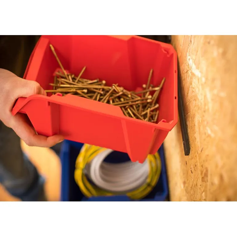Keskikokoinen punainen säilytyslaatikko, jossa on suuri käyttöä helpottava aukko. Järjestä pikkutavarat ja tarvikkeet monipuolisella STANLEY®-säilytyslaatikolla. Laatikot voi pinota erilaisia säilytysratkaisuja varten. Voidaan kiinnittää seinään keskikokoisilla STANLEY®-seinäkiinnikkeillä, jotka lisäävät järjestystä autotallissasi. Vahva polypropeenirakenne pidentää käyttöikää. Yhden laatikon koko 23,81 x 17,53 x 12,6 cm.