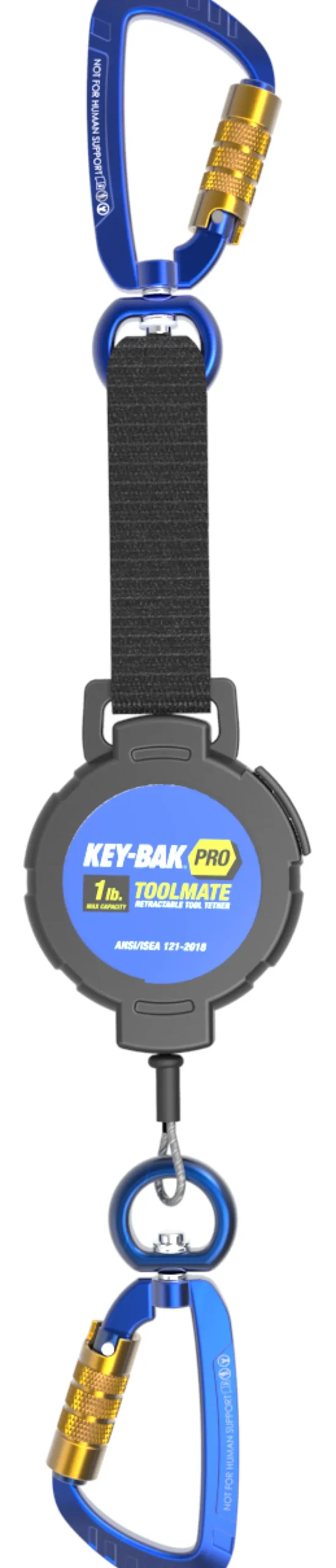 Toolmate on itsestään kelautuva pidike, joka pitää nauhan mahdollisimman lyhyenä ja tekee työkaluista helposti saavutettavia ja käytettäviä. Kiinnike: 2 x karbiinihaka, sisäänvetovoima: 340 gr, kuorman paino: 0,45kg