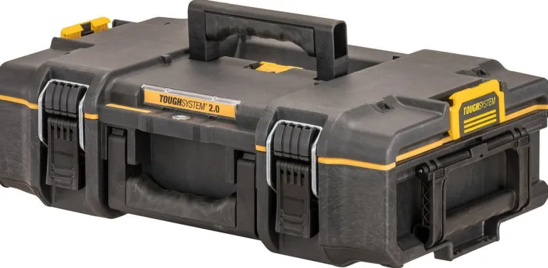 Työkalupakki ToughSystem 2.0 DS166, patentoidut sivulukot automaattista liitäntää varten, mikä voi helpottaa yhden käden käyttöä. Kaksiosaiset metallisalvat takaavat kestävyyden, kun kiinnität työkaluja sisäpuolelle. IP65-luokitus, pölyn- ja vedenpitävä, kuormauskapasiteetti 50 kg. Työkalupakin sisällä on kaksi suurta lajittelulaatikkoa. Yhteensopiva kaikkien ToughSystem-tuotteiden kanssa.