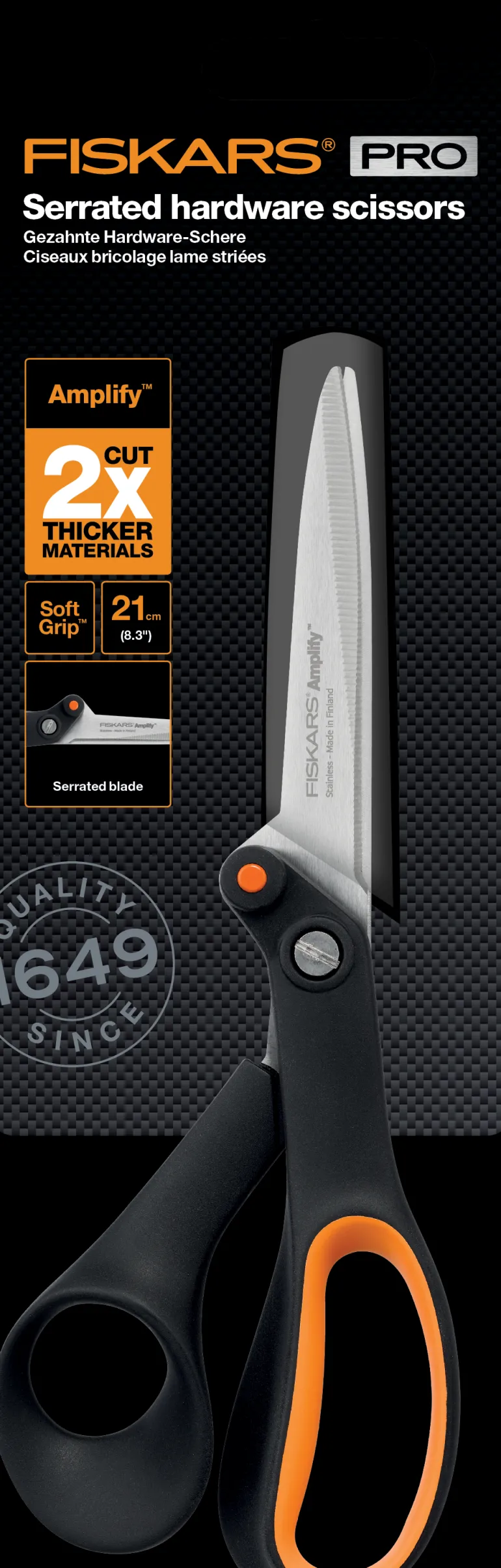 Näissä korkealaatuisissa saksissa on hammastettu terä, joka tarttuu liukkaisiin materiaaleihin ja tuottaa virheettömiä tuloksia. Hammasterällä varustetut Amplify-sakset sopivat erinomaisesti vaativiin leikkuutöihin, koska ne estävät terän irtoamisen ja pakottavat terät takaisin leikkaamaan puhtaasti erityisen tehokkaiden materiaalien avulla. Tämä uskomaton saksiteknologian innovaatio tarkoittaa, että voit leikata materiaaleja, kuten nahkaa, kangasta ja mattoja, tehokkaammin kuin koskaan. Näissä ainutlaatuisissa saksissa on lisäksi hammastettu terä, joka tarttuu liukkaisiin materiaaleihin ja tuottaa virheettömiä tuloksia.