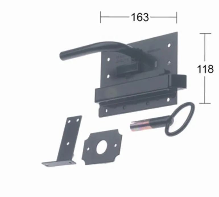 Raskaille oville latoon, varastoihin jne. Lukkolevy 160×118 mm. Avaimenreikien väli 80 mm.
